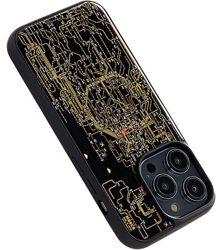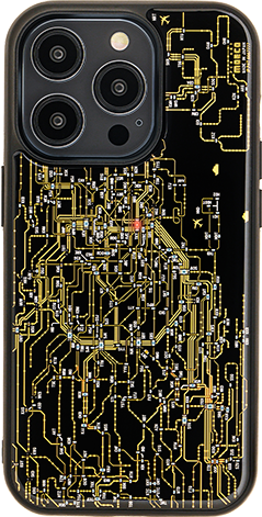 FLASH 東京回路線図 iPhoneケースは、電池無しで東京駅に実装したLED が光ります。
