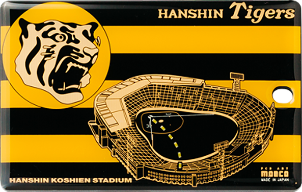 FLASH 阪神タイガース 基板アート IC カードクリップ は、改札のタッチやIC カードでの決済時に電池無しで LED が光るギミック付きです。